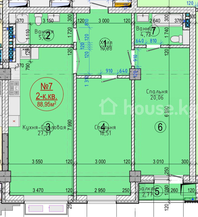 $ 162 900 $ 1 826/м2 14 263 524 сом 159 885 сом/м2