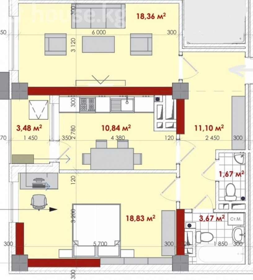 $ 116 500 $ 1 630/м2 10 203 070 сом 142 755 сом/м2