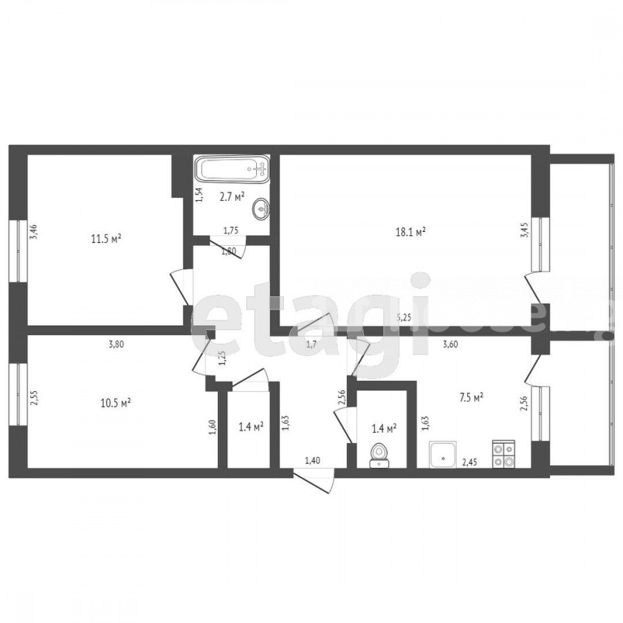 3-комн. кв., 61 м2