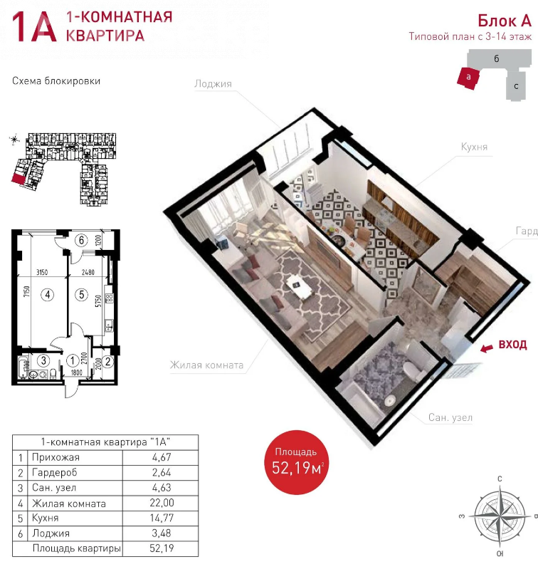 $ 71 170 $ 1 300/м2 6 232 357 сом 113 841 сом/м2