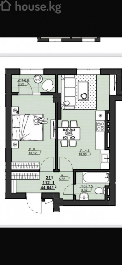 1-комн. кв., 44.64 м2