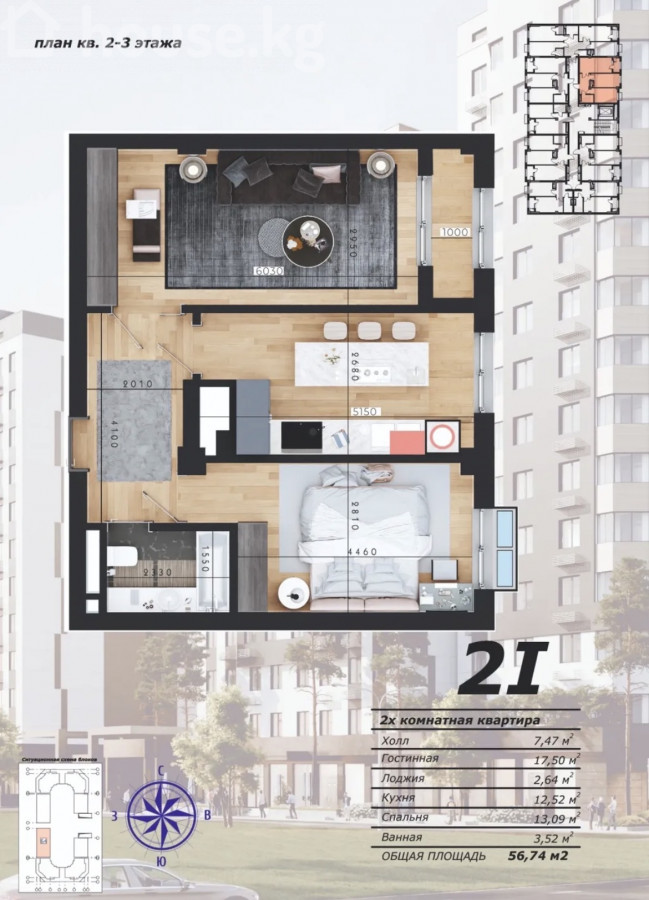 Продается 2 комн квартира под ПСО 57м2 на 2 этаже из 9 Элитка ЖК Эверест от СК Борсан ДДУ Цена: 80500 ID: 73686