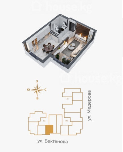 Продажа, 1-комн. кв., пентхаус, Бишкек, Матросова