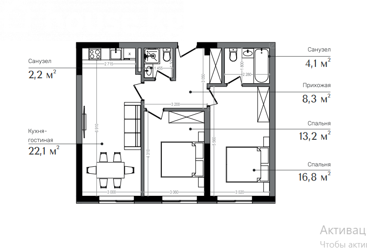 2-комн. кв., 66.7 м2