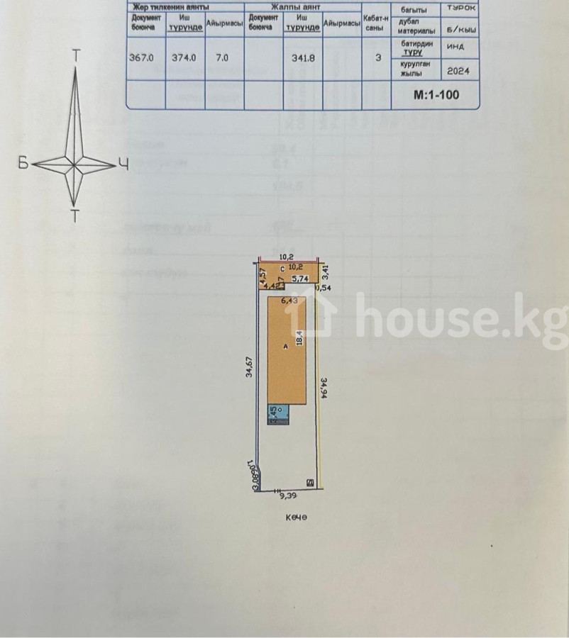 Продаю отдельно стоящее здание в 3 уровня с эксплуатируемой кровлей по первой линии Мкр Восток 5 Гражданская / 7 Апреля Общая площадь 342 м2 ( цоколь, 1 этаж, 2 этаж ) + 100 м2 эксплуатируемая кровля Участок 3,7 сотки на красной книге Год постройки 2024 Коммуникации: свет 3 фазы , газ , вода , центральная канализация , отопление комбинированное Строили под детский сад , так же подойдет под мед центр , обучающий центр, офис , прочее Двор брусчатка, место на 4 авто , на территории имеются хоз. и тех. помещения Стоимость 430 000 $