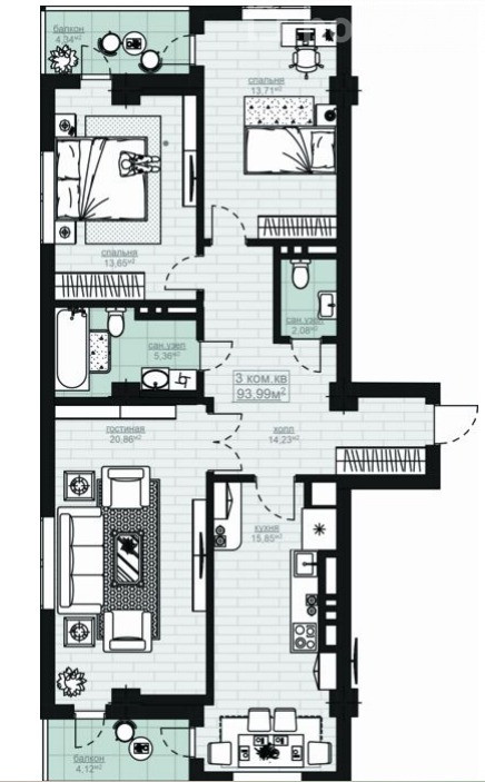 3-комн. кв., 94 м2