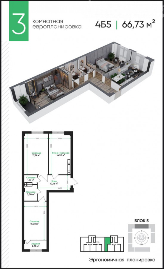 3-комн. кв., 66 м2
