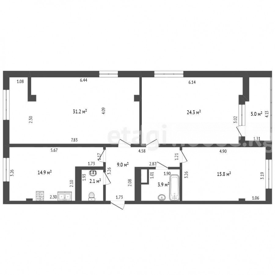 101 м2, жилая: 71.3 м2