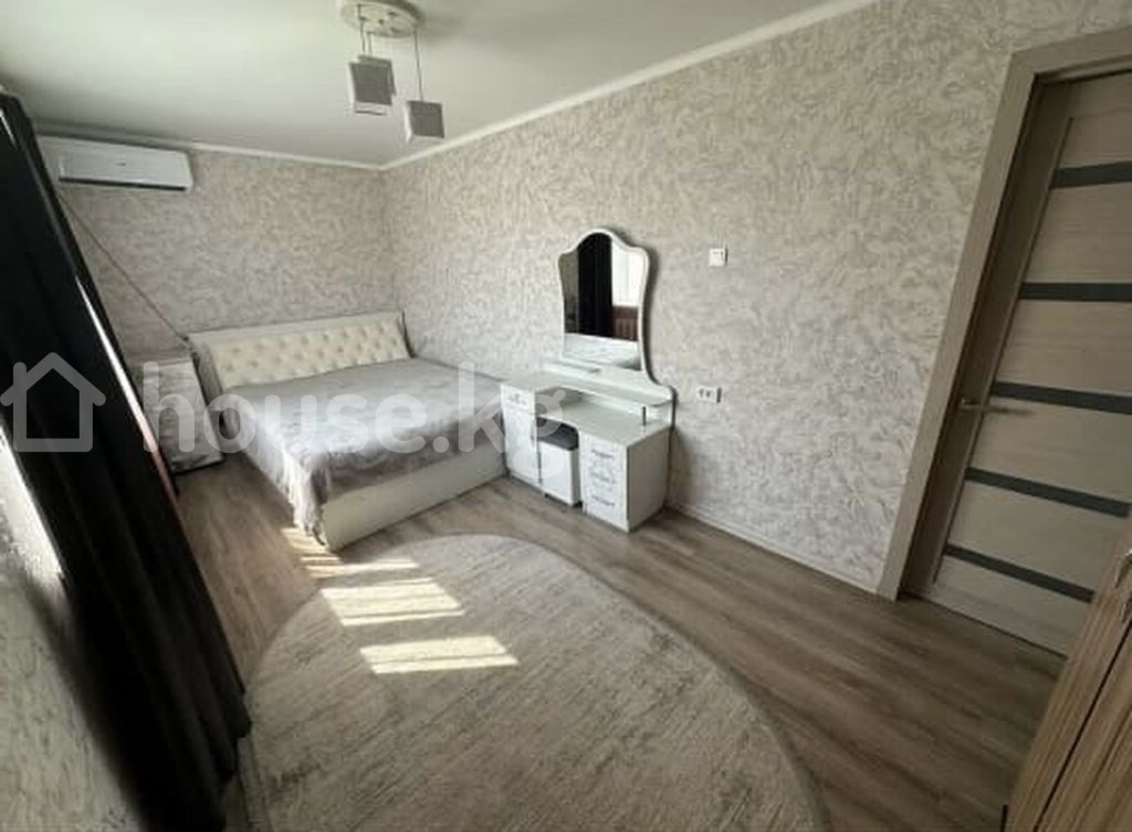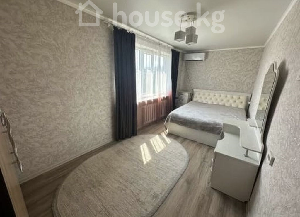 Продаю квартиру рядом с Рынком Ортосай 7 Мкр Вся мебель остается Светлая 2‑комнатная квартира с полноценной спальней и гостиной. Планировка и отделка: - Просторная спальня с двуспальной кроватью с мягким изголовьем, прикроватной тумбой, туалетным столиком с большим зеркалом и ковром; на окнах — светонепроницаемые шторы. Установлен кондиционер. - Гостиная с диваном, рабочим столом и стулом, ковровым покрытием, потолочным светильником; есть кондиционер. - Кухня с окном во двор: гарнитур с верхними и нижними шкафами, газовая варочная поверхность, мойка, электрический чайник, стиральная машина, обеденный стол у окна. - Санузел совмещённый: ванна с душем и шторкой, унитаз, тумба с раковиной и зеркальным шкафом, полотенцесушитель. - Напольное покрытие — ламинат, стены в светлых тонах, пластиковые окна, радиаторы отопления, потолочные светильники. Дополнительно: - Два кондиционера (в спальне и гостиной). - Телевизор на стене в гостиной. - Большие окна, много естественного света. - Уютные ковры в комнатах. цена: 6 869 000 сом (78500$) тел: 0709887688 Азамат "Кыргыз Недвижимость" ID: 74347