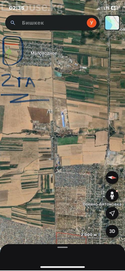 💈Продаётся орошаемая земля — 2 ГА 🔥 💰 ВЫГОДНОЕ ПРЕДЛОЖЕНИЕ — УСПЕЙ ЗАБРАТЬ! 🤝 💈Продаю 2 гектара плодородной пахотной земли — отличный вариант для тех, кто хочет зарабатывать на сельском хозяйстве или выгодно вложить деньги. 📍Расположение: - с. Маловодное, пригород Бишкека - Участок примыкает к полевым дорогам; 🚗 Проезд с северной стороны от жилой застройки Маловодного и с южной стороны по полевой дороге. 🚜 Участок полностью готов к работе: • Орошаемый (💧) • Ровный, удобной формы • Отличный подъезд — техника заезжает без проблем • Находится среди обрабатываемых полей 🌱 Подходит для: • Выращивания овощей, зерновых • Тепличного бизнеса • Сада или агробизнеса 📄 Документы на руках, проблем нету ✅ ✔️ Без проблем и задержек — сразу оформление 💯 ⚡ Почему стоит брать сейчас: • Земля дорожает каждый сезон • Таких участков всё меньше • Отличное место для стабильного ежемесячного дохода 💥 Реальному покупателю — хороший торг! 📞 Пиши/звони прямо сейчас — такие варианты долго не ждут! Номер вместе с WhatsApp указаны в объявлении 📲