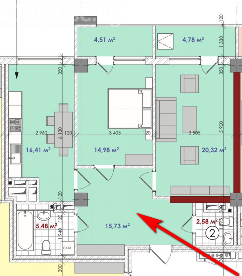 2-комн. кв., 85 м2