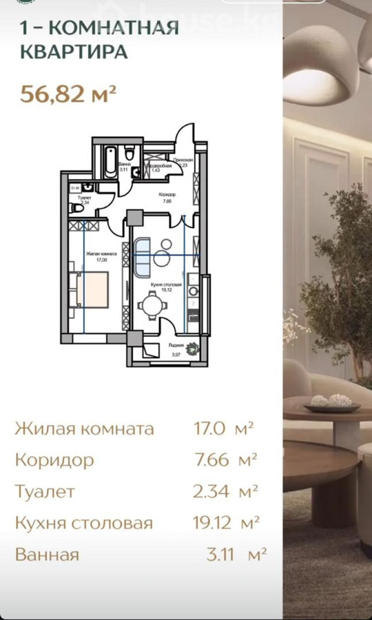$ 58 000 $ 1 150/м2 5 077 900 сом 100 683 сом/м2