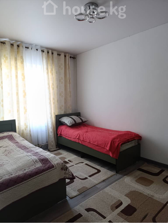 Продается светлая 2‑комнатная квартира с новым ремонтом, 65м2, на 1/5 этаже с раздельными комнатами. Квартира находится на Иссык-Куле, с. Бостери, по ул. Мамытова . Особенности: - Просторная гостиная с двумя диванами, большим ковром и плотными шторами; современные потолочные светильники. - Спальня с двумя отдельными односпальными кроватями, постелью и шторами блэкаут. - Отдельная кухня с выходом на балкон/лоджию: кухонный гарнитур, стол, электрическая варочная панель/плитка, вытяжка, электрочайник, раковина, место под холодильник, батарея-радиатор, окно и дверь ПВХ. - Санузел с ванной: новая ванна стандартного размера, умывальник с тумбой, смеситель-«душ», водонагреватель/бойлер, стены под мрамор, керамогранитный пол. - Полы ламинат, высокие потолки, крупные окна с тюлем и шторами. - Ковры в комнатах, подушки и пледы включены. Подходит для семьи или двух раздельных спален и общей гостиной. Тихий, светлый интерьер в нейтральных тонах.