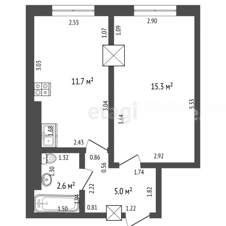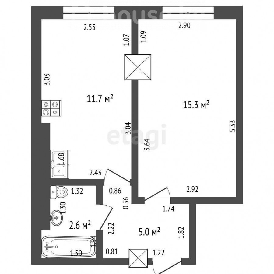 35 м2, жилая: 15.21 м2