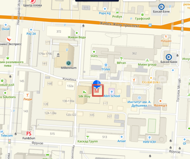 р-н Первомайский, г. Бишкек, ул. Жумабека (бывш. Иваницина), д. 162а.