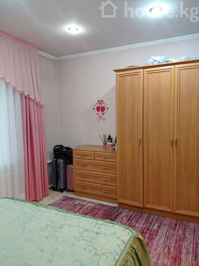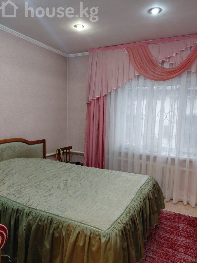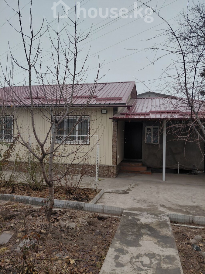 ПРОДАЮ! Финский дом, с пристройкой из шлакоблока, в районе Ботаническом сада, по ул Минина. Общая площадь 98 м2. В доме 4спальные комнаты, зал, кухня, санузел, коридор, прихожая. Коммуникации: Два септика, электричество( 3ф), вода, природный газ. Отопление комбинированное : электричество, газ. Стены обои. Окна пластиковые с решетками. Полы деревянные, линолеум. Состояние дома чисто, аккуратно, с косметическим ремонтом. Кровля: металлочерепица по всему периметру, включая навес для автомобиля. Наружная отделка: дом утепленный, фасад с декоративными панелями. Двор: большая бетонированная площадка, клумбы, плодовые деревья, баня, времена. Участок огорожен металлическим забором и воротами, ширина 21м, длина 29м всего4 сотки Цена - 250000$. (21 880 000 сом) Телефон 0505910050 0559995879 0506510144