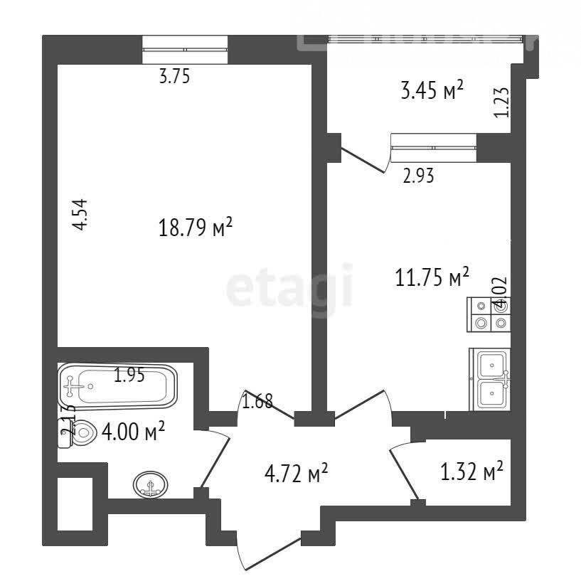 1-комн. кв., 44 м2, 3 этаж из 12