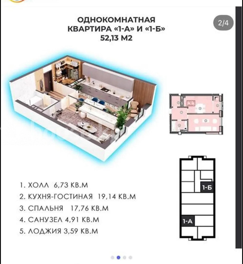 1-комн. кв., 52 м2
