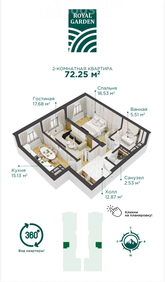 Продаю 2-комнатную квартиру в ЖК Бизнес-Класса “Royal Garden”Расположен по улице Анкара 1/16(район городского катка)10 этаж из 16 Конец строительства 2-квартал 2027 года Рассмотрю варианты обмена на авто