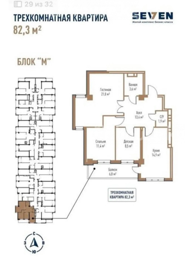 Продаю 3-комн квартиру в ЖК Seven от СК Golden House Площадь 82.3 кв м Этаж 11/14 - М блок Санузлы раздельные Район Технопарк (Алматинка/Горькая) ПСО май 2026 г Цена всего 1040$ за 1 кв м Дом на Красной книге Оформление ДДУ через госрегистр 0222882250