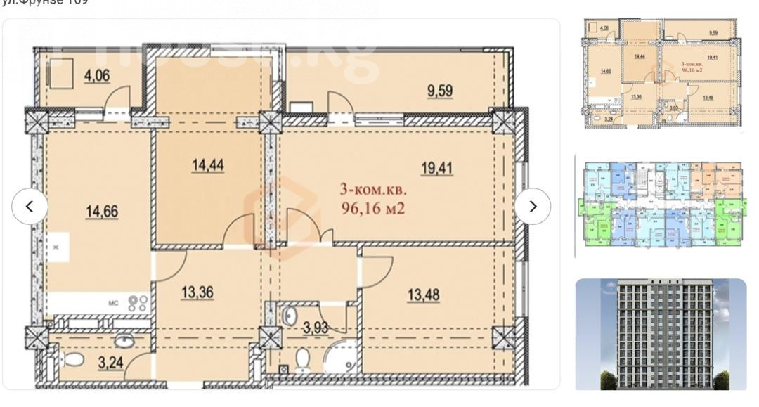 $ 117 000 $ 1 562/м2 10 245 690 сом 136 784 сом/м2