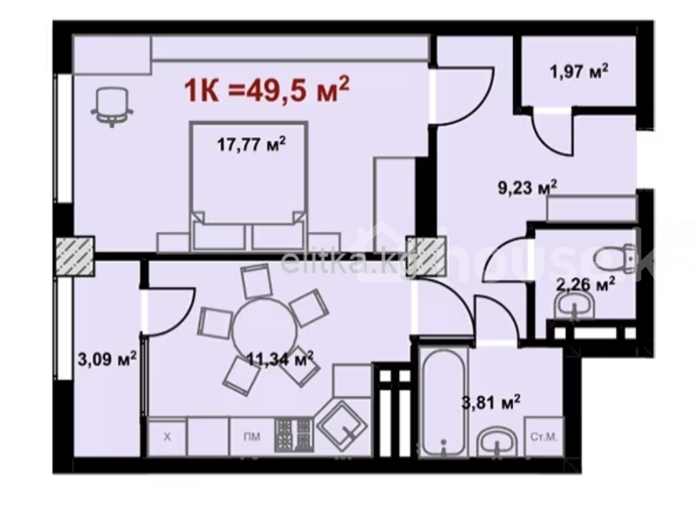 Продажа, 1-комн. кв., элитка, Бишкек, с. Кок-Джар