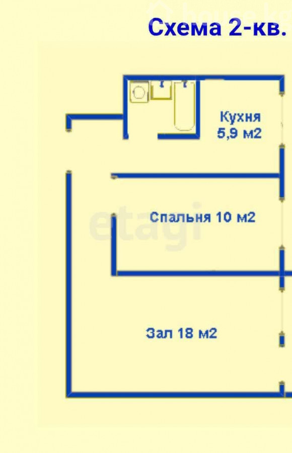Продажа, 2-комн. кв., 104 серия, Бишкек, 9 м-н