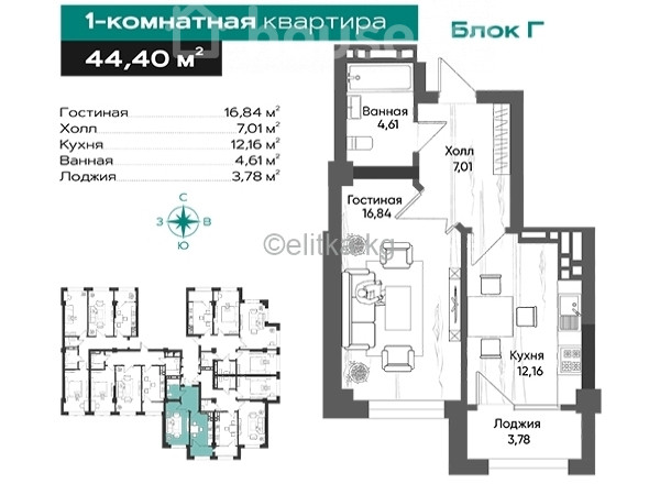 1-комн. кв., 44.4 м2