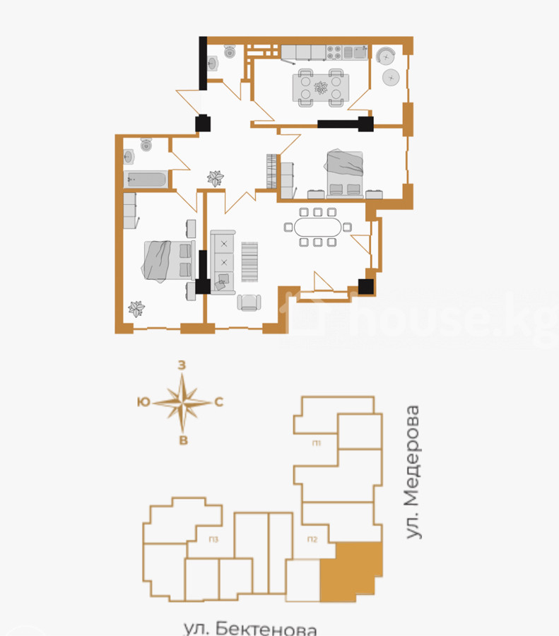 Продажа, 3-комн. кв., элитка, Бишкек, Матросова