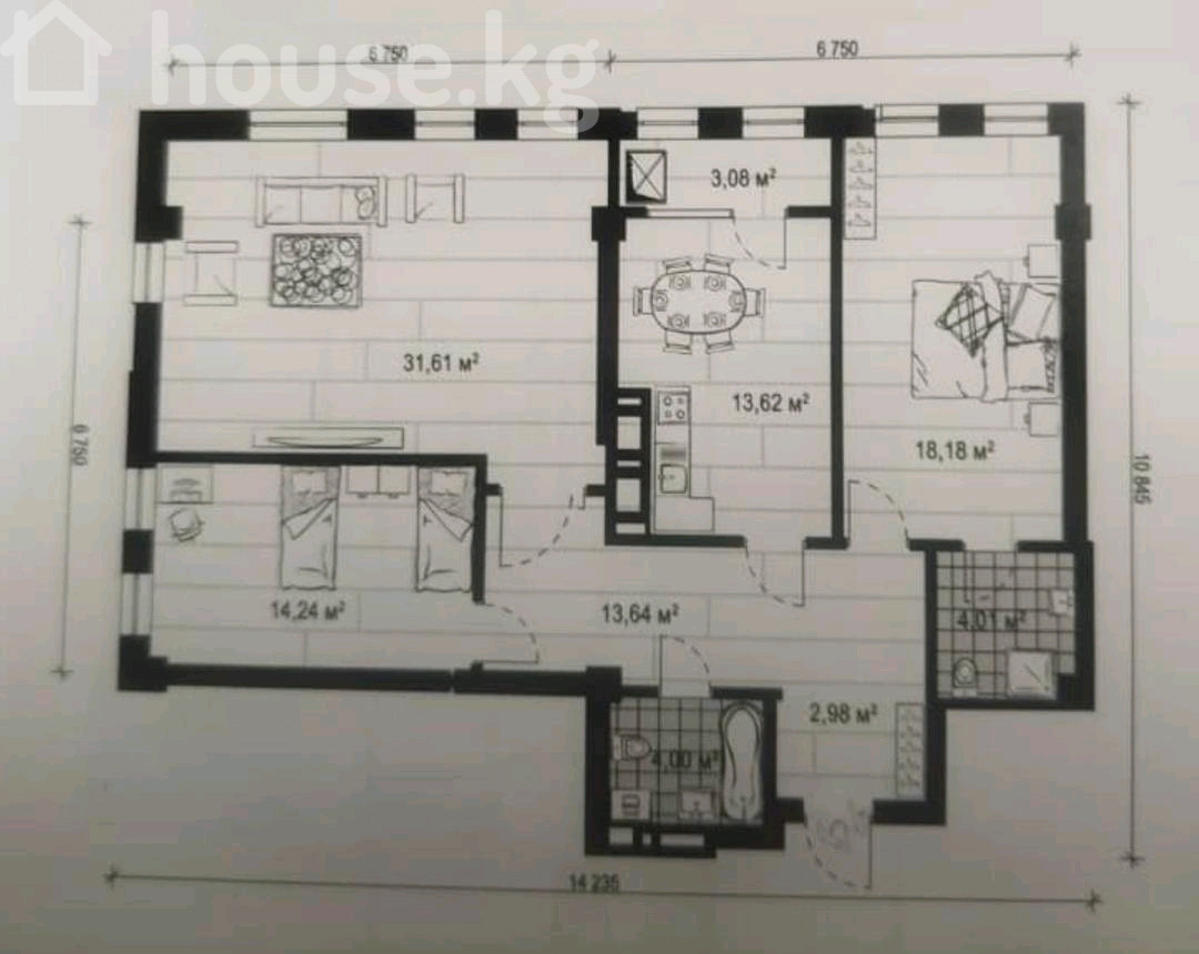 $ 165 000 $ 1 606/м2 14 450 700 сом 140 653 сом/м2