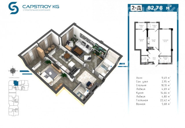 📍 ЖК «Капстрой Сити» 🏢 Характеристики квартиры и дома: * 2-комнатная квартира * Этаж: 6 из 14 * Общая площадь: 82 м² * Газовое отопление, газ подключён * Документы полностью готовы к сделке * Оформление через ГРС удобная планировка 📍 Расположение: Развитый и востребованный район города. В шаговой доступности школы, детские сады, супермаркеты, кафе и рестораны. Удобная транспортная развязка. на показе посчитаю смету на ремонт Цена: $105 000 тыс (9 180 000 сом) Азамат (0701)(88)(88)(52) Кыргыз Недвижимость