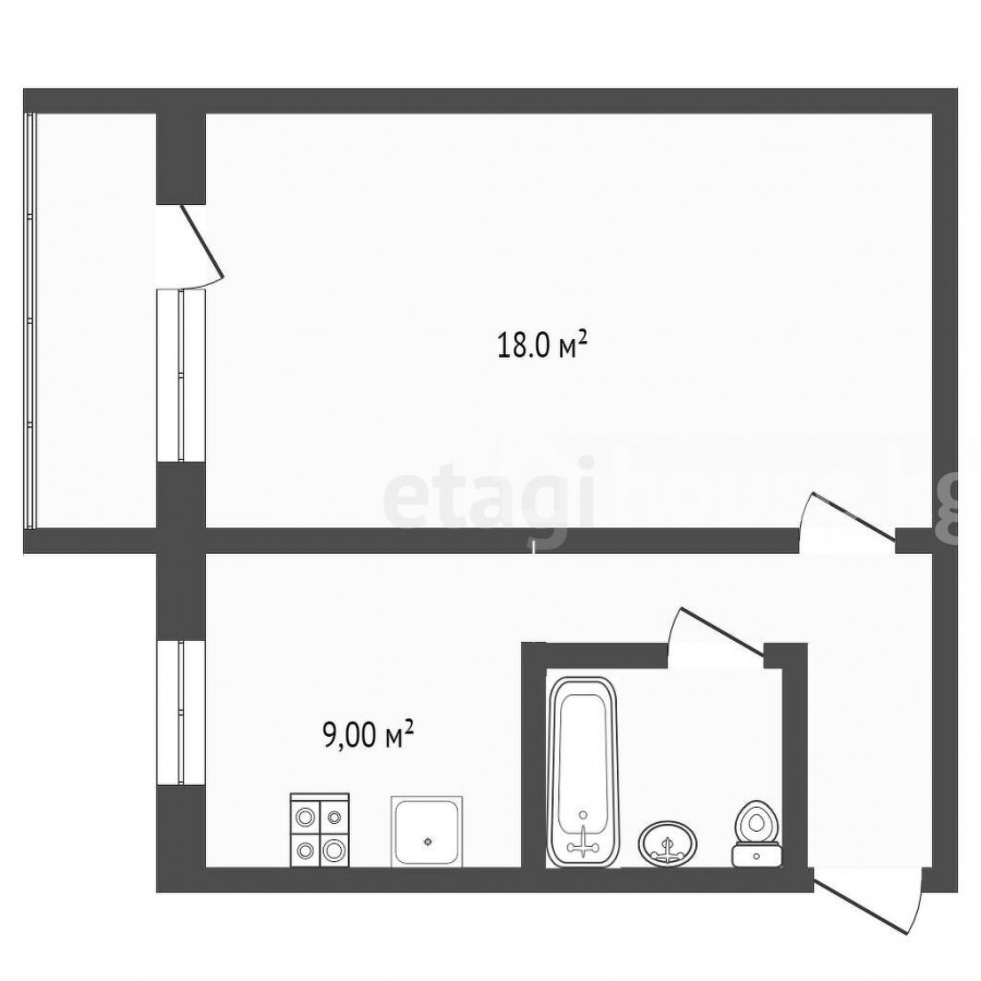 32 м2, жилая: 18 м2