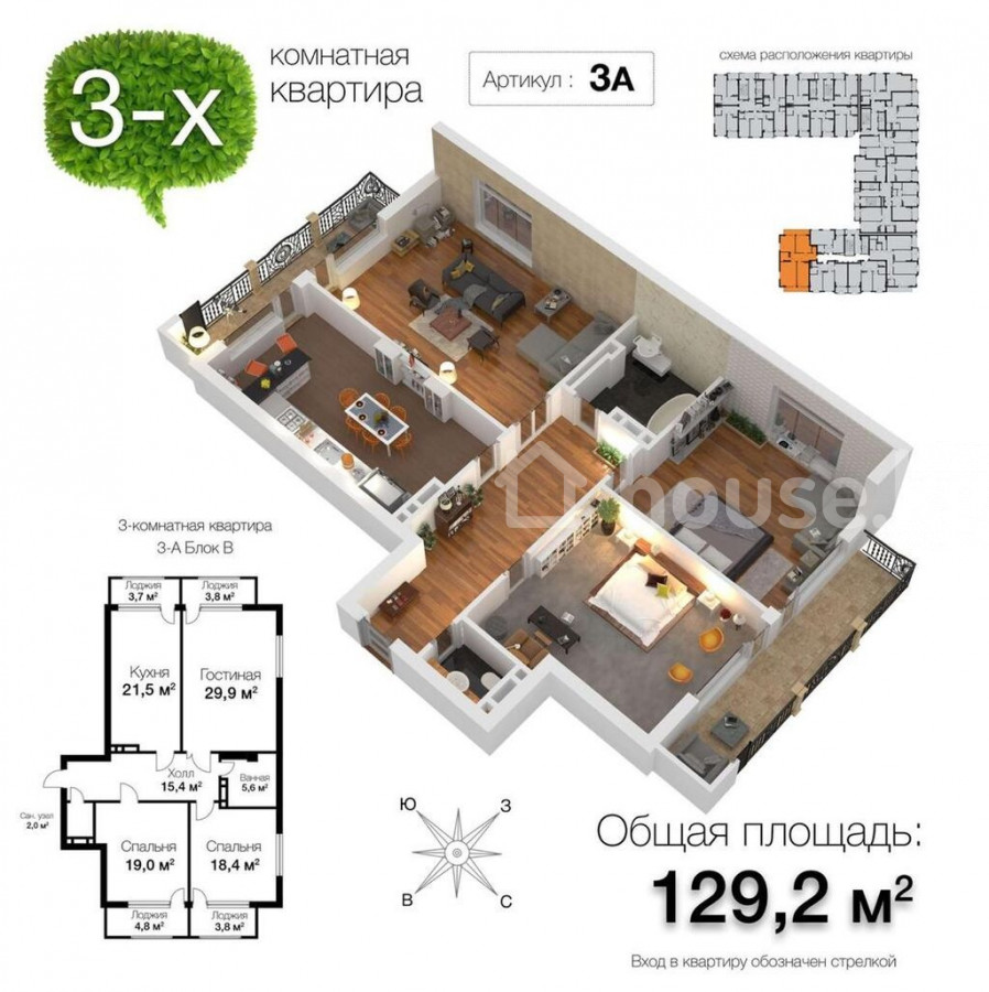 3-комн. кв., 130 м2