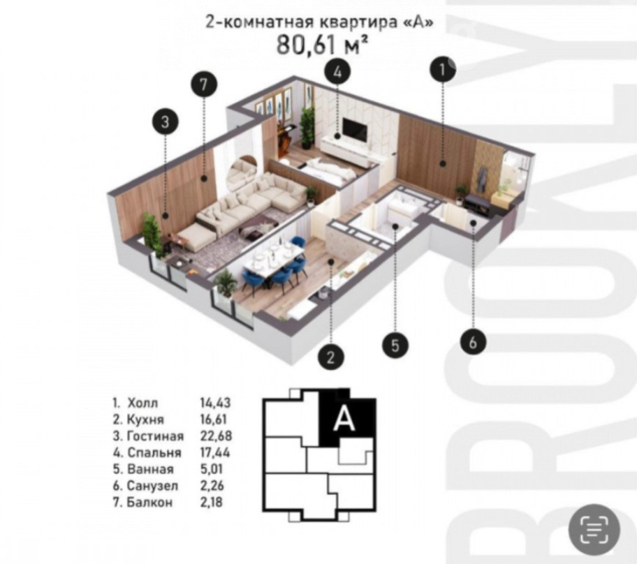 Квартира ПСО 80.6м² в ЖК Brooklyn Продается светлая квартира на 15/17 этаже бизнес-класса комплекса от Royal Construction. • Площадь: 80.6м² • Высота потолков: 3,3 м • Отопление: газовое, все центральные коммуникации • Состояние: под самоотделку (ПСО) • Сдан под Псо 🏢 Дом с современным фасадом из клинкерного кирпича, качественная шумо- и теплоизоляция. 🏡 Закрытый двор с охраной, детскими и спортивными площадками, подземный и гостевой паркинг. Удобная локация: рядом школы, магазины, аптеки и остановки транспорта. Отличный вариант для комфортной жизни или вложения. Цена: 119.000$ 0701//69/80/34 Анара Борбор недвижимость id: 10116