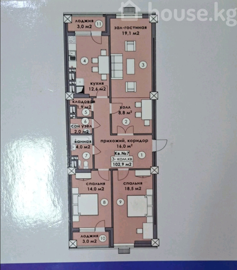 103 м2, жилая: 103 м2, кухня: 18 м2