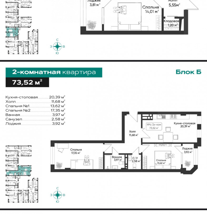 2-комн. кв., 74 м2