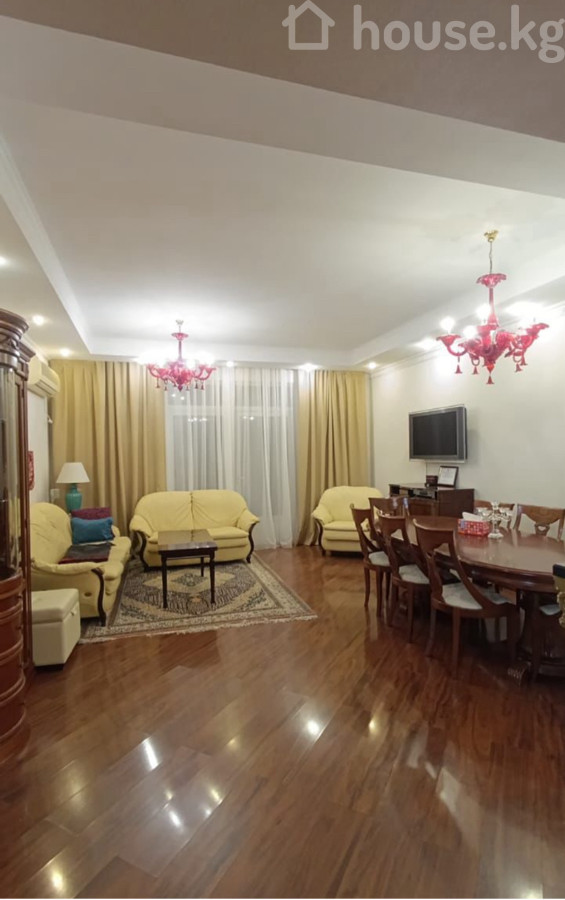 Прод-ся элитная 4 ком. кв-ра 2/6этаж, 168м2 + 4 лоджии с каждой комнаты в «Клубном доме», в самом центре «Золотого квадрата» по ул. Тыныстанова/Боконбаева. В квартире сделан Евроремонт. Вся мебель и люстры (Муранское стекло и хрусталь) производство Италия. Вся техника из Германии , фирмы «Bosh», все остается. Теплый пол. Лоджии застекленные и выходят с каждой комнаты. Сам дом кирпичный , всего 2 подъезда , на площадке по 2 квартиры. Имеется лифт. Есть парковка. Направление окон восток/запад. Все коммуникации центральные. В шаговой доступности: - Будьвар «Эркиндик» - ТЦ «Евразия», «ЦУМ», «ГУМ», «Дордой Плаза» - элитные школы N 6, 67,24, 5, 28 - Кинотеатр «Ала-Тоо» - Площадь - Поликлиники и больницы - Кофейни и рестораны Удобная транспортная развязка.