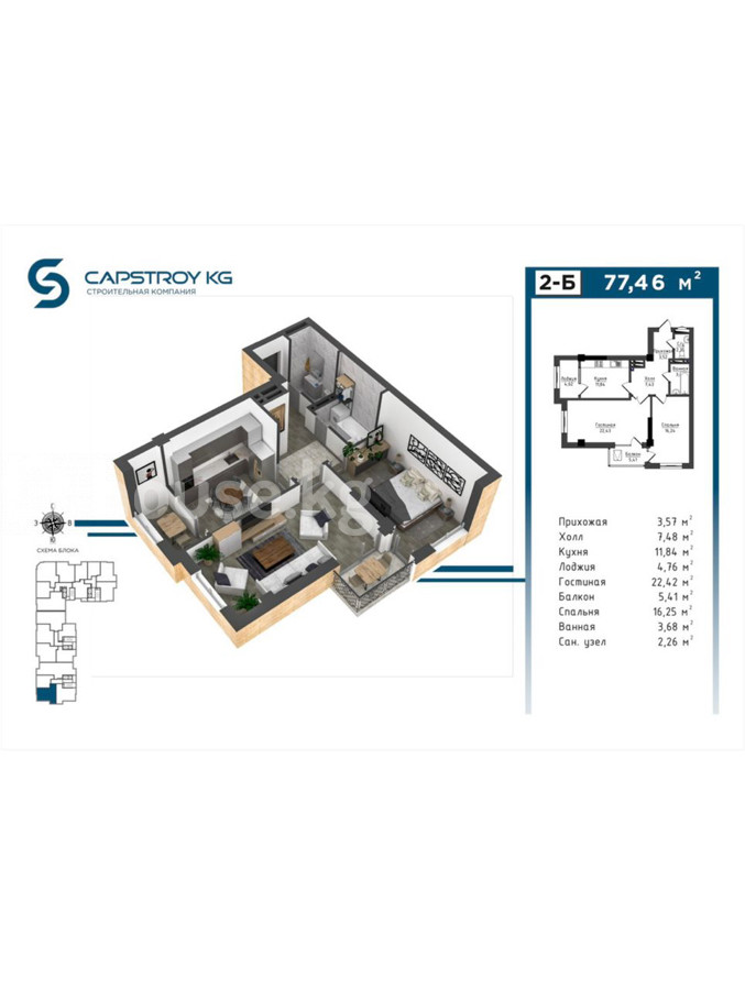 🔥 Срочно! Продаётся 2-комнатная квартира в элитном ЖК Capstroy City 🔥 Отличное предложение для комфортной жизни в престижном районе! 📍 Локация: верхняя часть города — тихий, экологичный и востребованный район. 🏙 ЖК: Capstroy City, Блок Б 📐 Площадь: 77.46 м² 🏢 Этаж: 5 из 14 🛠 Состояние: ПСО — делайте ремонт под себя 🏗 Конструкция: монолитно-кирпичная 🔥 Отопление: газовое 🔐 Территория: закрытая, охраняемая 🏢 Застройщик: Кап Строй 📄 Документы: ДДУ через Госрегистр, красная книга 💰 Цена: 105 000 $ 📞 Контакт: 0552 44 49 99 ✨ Преимущества: — Элитный комплекс от надежного застройщика — Просторная планировка и хороший этаж — Газовое отопление — тёплое и экономичное — Престижное расположение — Отличный вариант для жизни или инвестиций
