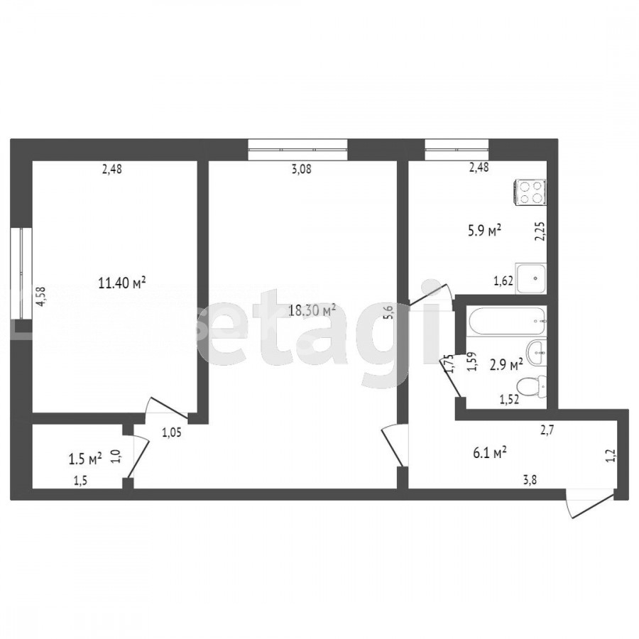 2-комн. кв., 46 м2