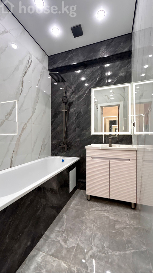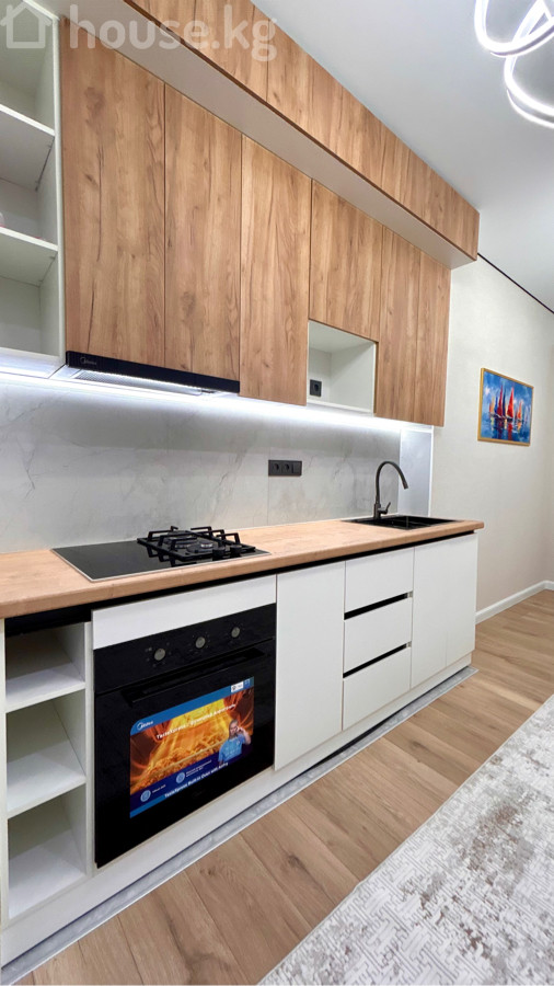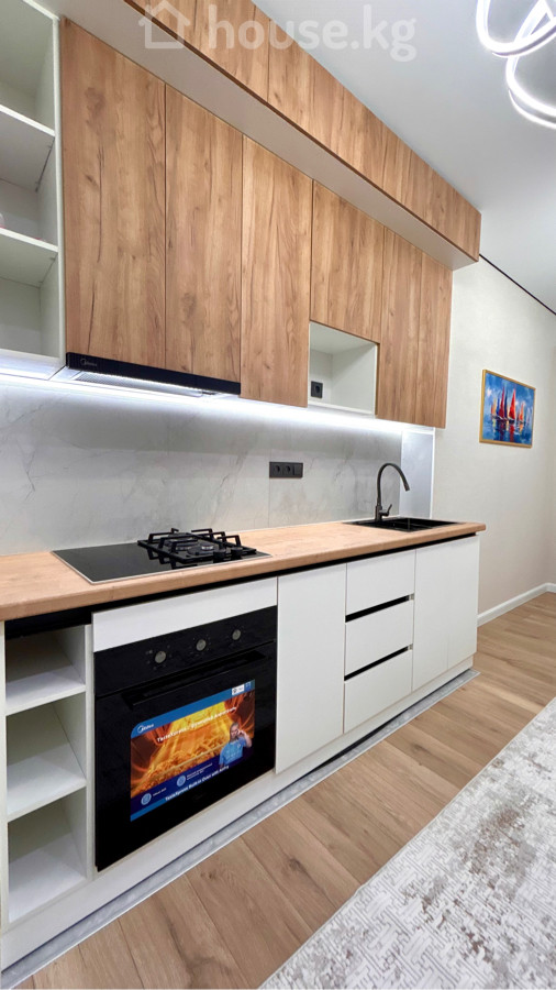 Продается новая квартира 51.4 м2 в ЖК “Алыкул” 📍 Золотой квадрат, район Боконбаева-Уметалиева. Адрес: ул.Тимирязева 6. 4-й этаж из 13и. Лифт работает. ❕Дом бизнес-класса, с фасадом из керамогранита. ✅Ремонт дизайнерский. 1-комнатная квартира превращена в уютную двушку делением жилой комнаты с помощью лофт-перегородки. Раздельный санузел . Окна на восток. Вид из окна красивый. Квартира не угловая. Полностью меблирована. Из техники есть: кондиционер, бойлер, варочная панель, духовка, вытяжка. ✅По всей квартире установлены электрические теплые полы. Отопление газовое автономное, будет работать к новому отопительному сезону, оборудование установлено. 📕Документы: ДДУ через Госрегистр. Земля на красной книге. Цена: 98000$.