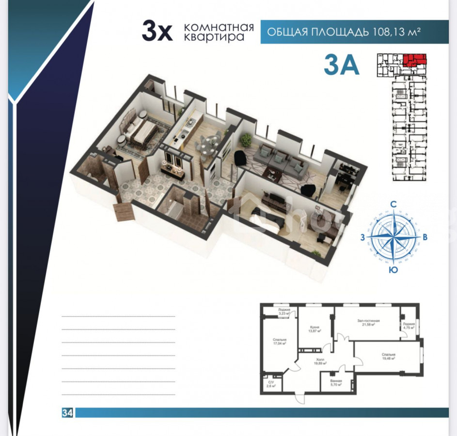 3-комн. кв., 108 м2