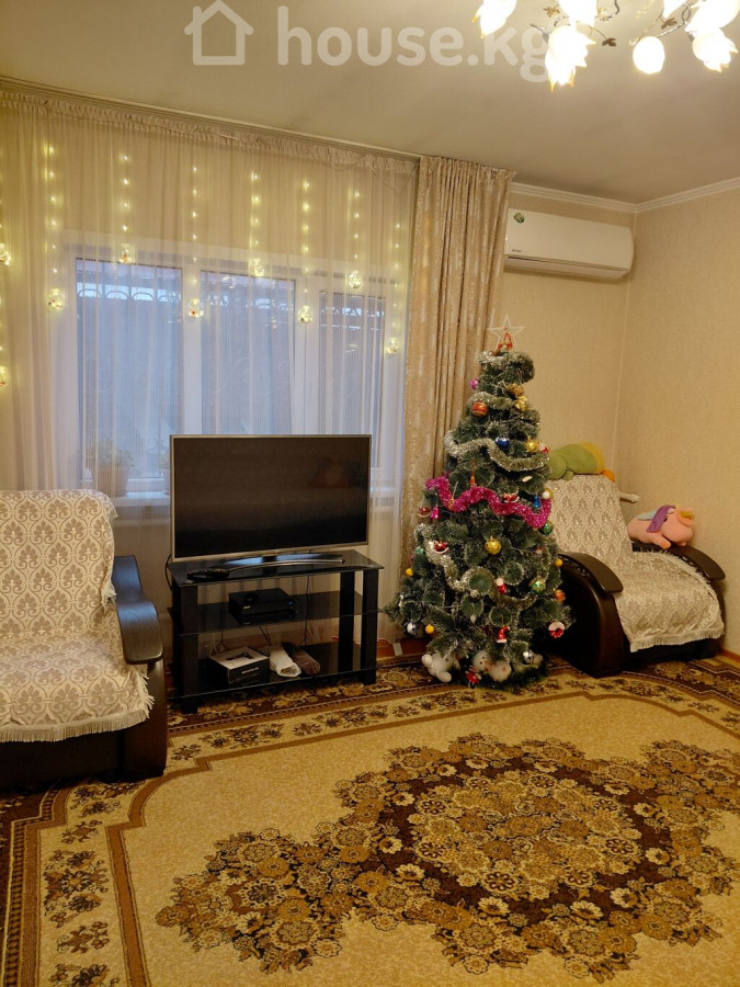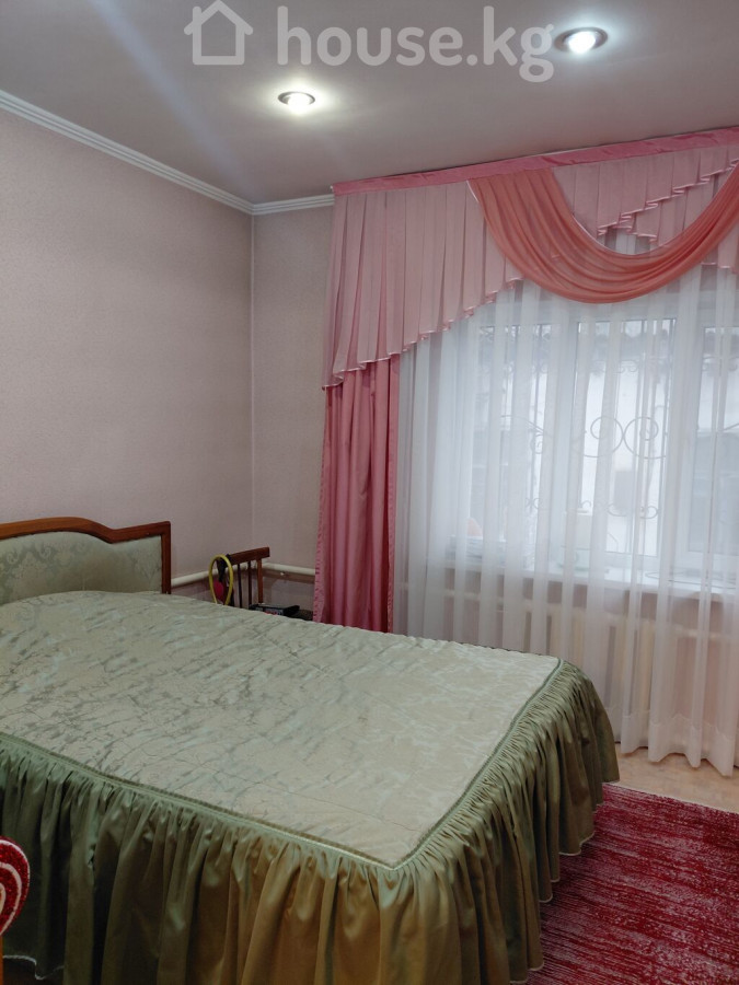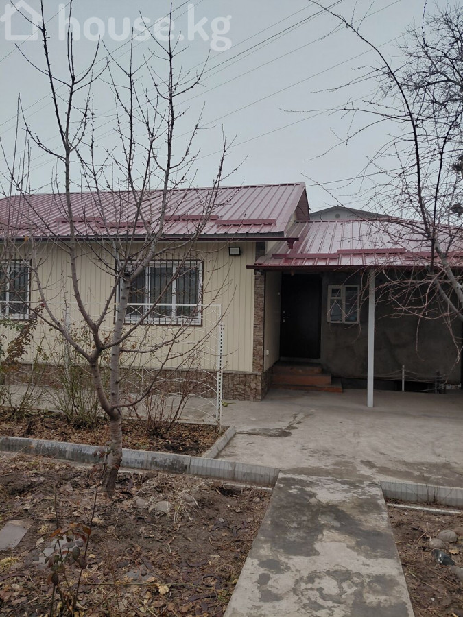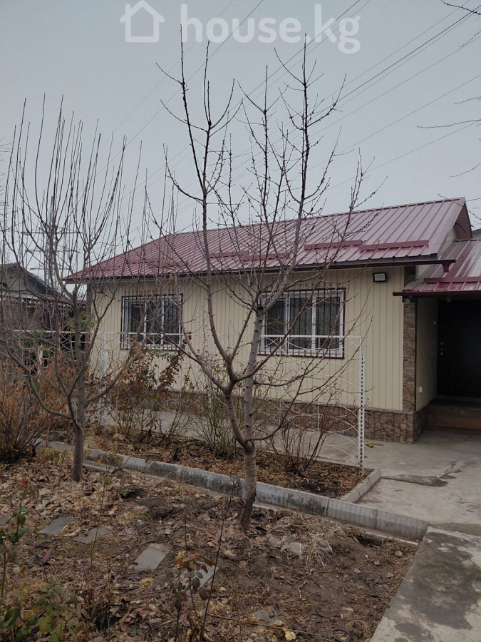 ПРОДАЮ! Финский дом, с пристройкой из шлакоблока, в районе Ботаническом сада, по ул Минина. Общая площадь 98 м2. В доме 4спальные комнаты, зал, кухня, санузел, коридор, прихожая. Коммуникации: Два септика, электричество( 3ф), вода, природный газ. Отопление комбинированное : электричество, газ. Стены обои. Окна пластиковые с решетками. Полы деревянные, линолеум. Состояние дома чисто, аккуратно, с косметическим ремонтом. Кровля: металлочерепица по всему периметру, включая навес для автомобиля. Наружная отделка: дом утепленный, фасад с декоративными панелями. Двор: большая бетонированная площадка, клумбы, плодовые деревья, баня, времена. Участок огорожен металлическим забором и воротами, ширина 21м, длина 29м всего4 сотки Цена - 250000$. (21 880 000 сом) Телефон 0505910050 0559995879 0506510144
