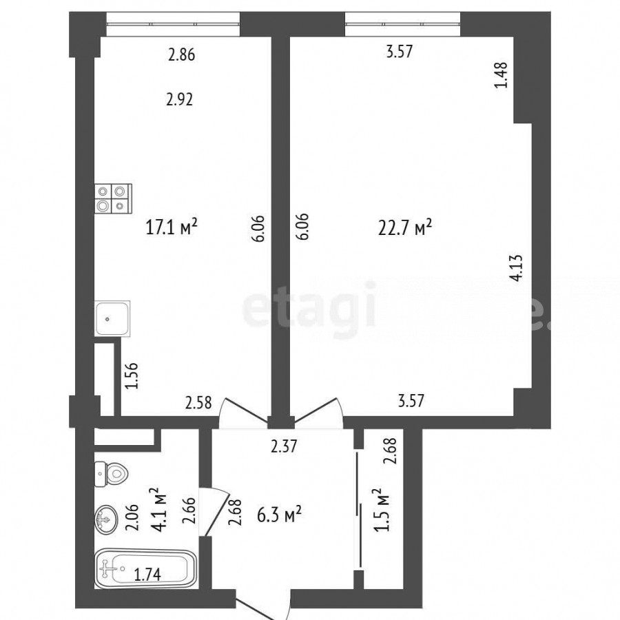 51.7 м2, жилая: 22.7 м2