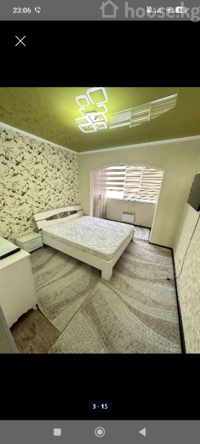 3-комнатная квартира с панорамным видом на город и горы. Особенности: - Планировка: отдельная спальня, кухня-гостиная (по фото виден полноценный спальный блок с арочным проёмом). - Спальня: двуспальная кровать, настенный телевизор, встроенный шкаф-гардероб; окно с жалюзи; современное потолочное освещение. - Отделка: светлые стены, комбинированный потолок с декоративной подсветкой, напольное покрытие с узорным ковролином. - Отопление: электрический конвектор в спальной зоне. - Окна: вид на частный сектор и новую многоэтажную застройку, открытые панорамы на горный хребет. - Дом: многоэтажный, вокруг развитая городская инфраструктура (видны дворовые пространства, парковки, жилые кварталы). Площадь:78м2 Этаж 8/10 Отопление: Электрический и теплый пол есть Цена:105.000$ торг при осмотре Тел: 509270919