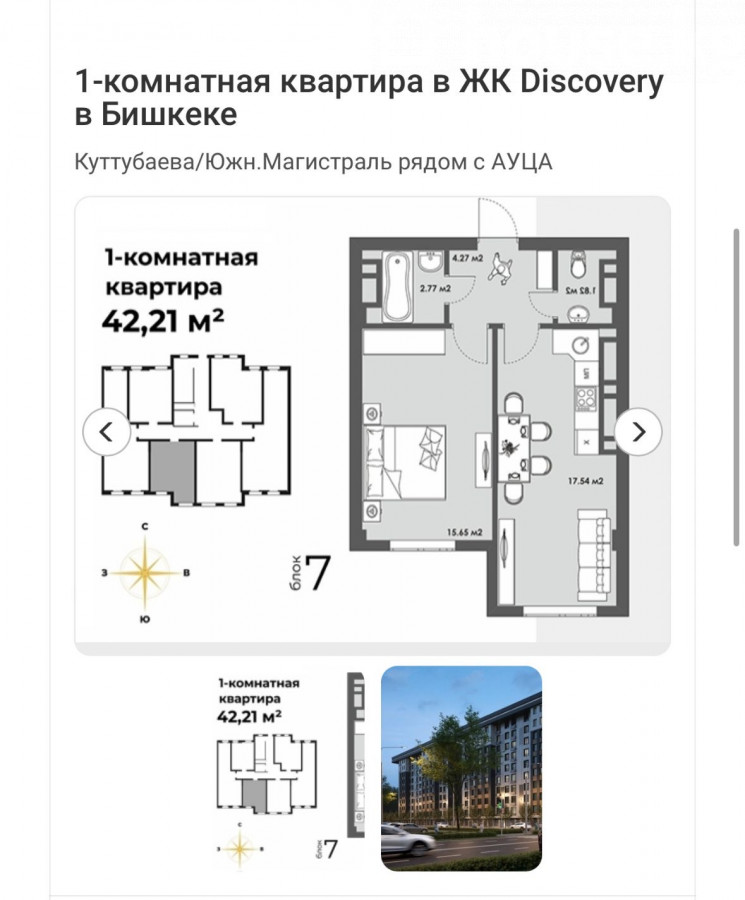 Продажа, 1-комн. кв., элитка, Бишкек, Магистраль