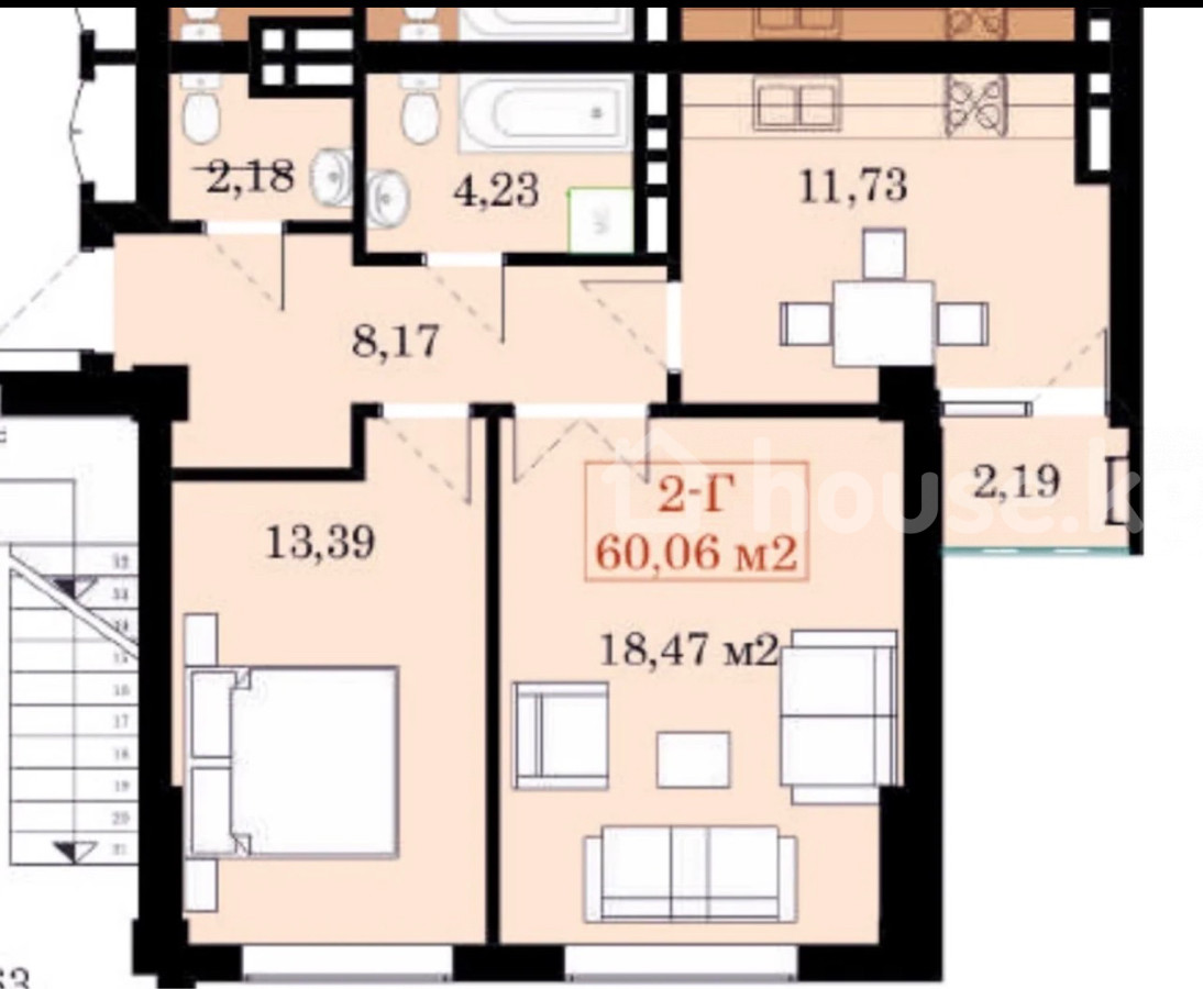 Продается 2-х комнатная квартира Район : Джал 15 Жк : Ихлас Джал Общая площадь : 60м2 Этаж : 13 из 14 Состояние : ПСО март 2026 Документы ДДУ Отопление газовое Цена : 78500$