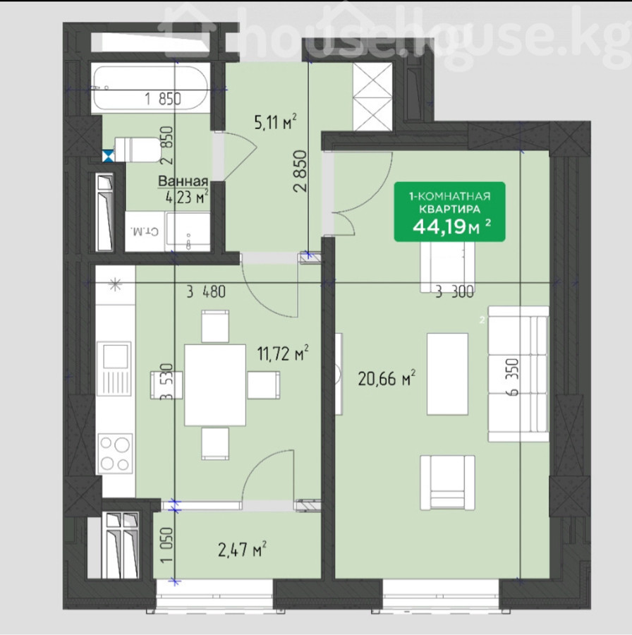 $ 62 900 $ 1 409/м2 5 508 782 сом 123 400 сом/м2