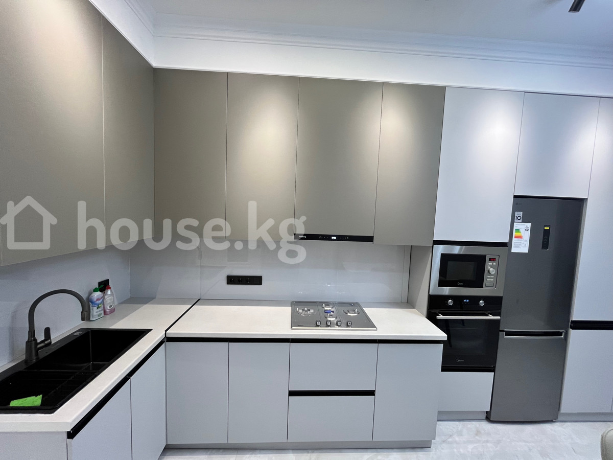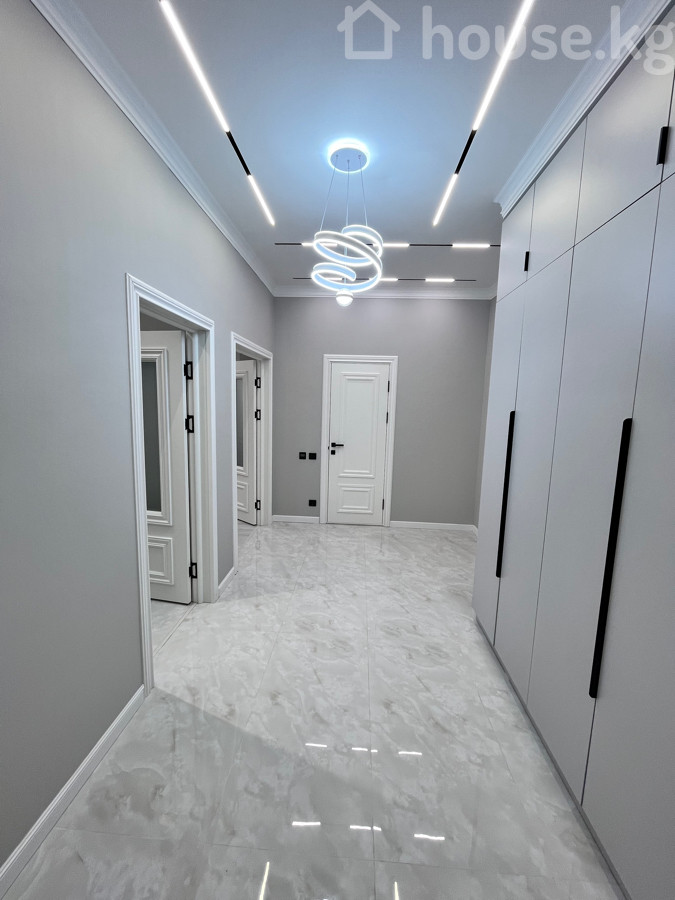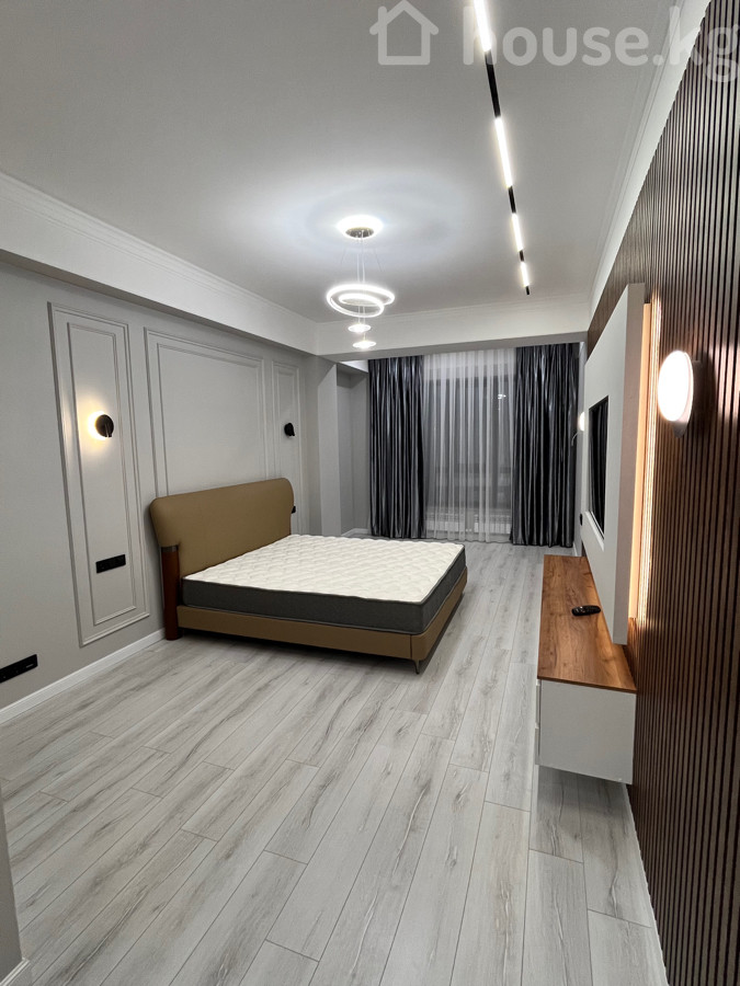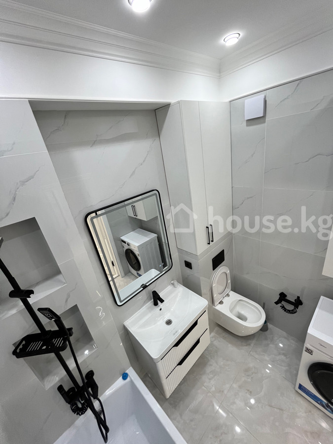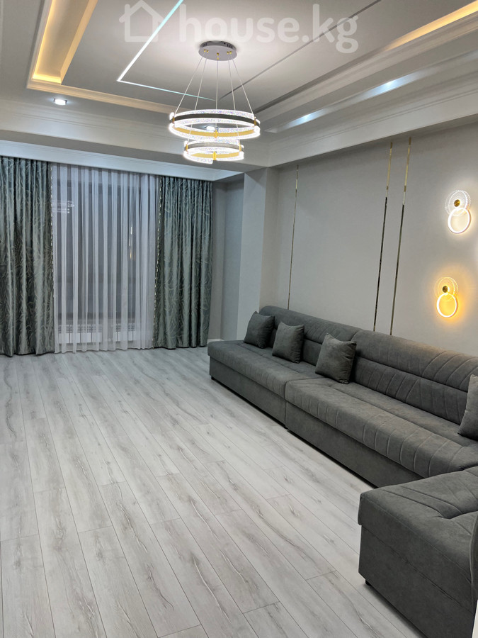 Сдается Просторная полноценная 2‑комнатная квартира с дизайнерской отделкой в современном жилом комплексе бизнес‑класса Ройал Основные характеристики: - Планировка: отдельная кухня‑столовая и большая гостиная, спальня , раздельные функциональные зоны. - Дизайн: светлые тона, многоуровневые потолки с контурной подсветкой, современные люстры и точечные светильники. - Кухня: линейный гарнитур с большим количеством систем хранения, варочная поверхность и духовой шкаф, встроенная техника, холодильник, обеденная зона на 4 персоны. - Гостиная: длинный модульный диван, акцентные настенные светильники, панорамные шторы в пол. - Полы: износостойкое напольное покрытие в комнатах, глянцевая плитка в кухне/прихожей. - Окна: большие, обеспечивают отличную инсоляцию. - Отопление: радиаторы, скрытая разводка. О доме и территории: - Монолитно‑кирпичный ЖК с премиальной входной группой и витражным остеклением. - Закрытый дворовый периметр без машин. - Благоустроенный внутренний двор с детской площадкой. - Элегантные фасады, декоративные балконы, панорамные лифтовые шахты. Идеально для тех, кто ценит современную архитектуру, качественную отделку и продуманное пространство для жизни. Находится по проспекту Мира за южной магистрали . Рядом есть торговый центр ала арча . Сдаю на долгий срок . В квартире недавно сделали ремонт и не кто еще не жил .