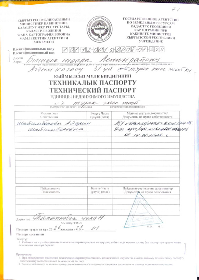 $ 93 600 $ 1 650/м2 8 197 488 сом 144 507 сом/м2