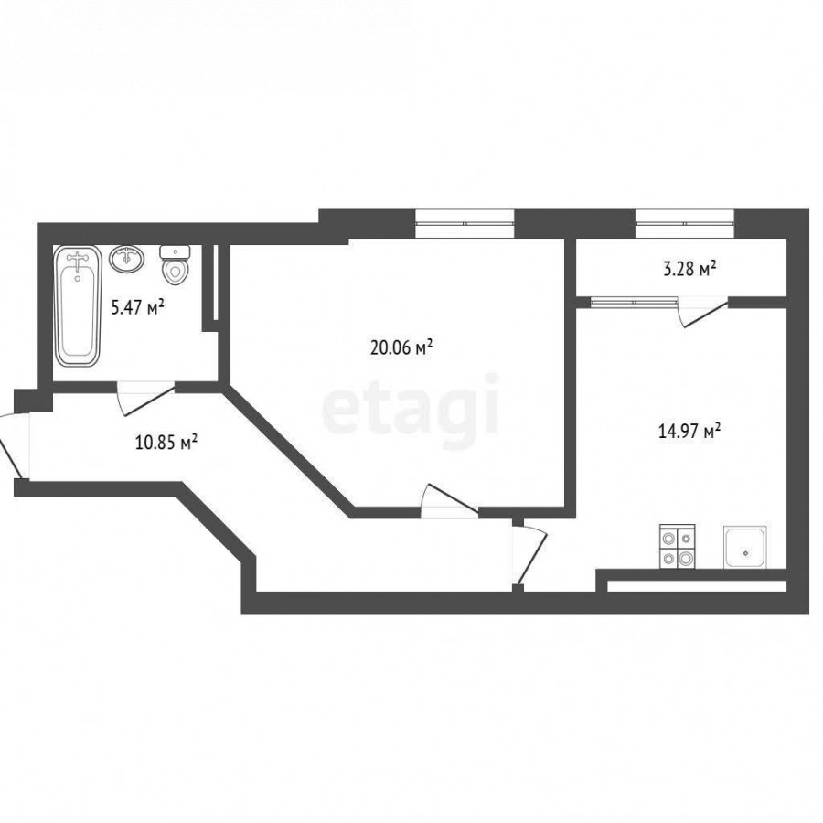 55 м2, жилая: 26 м2
